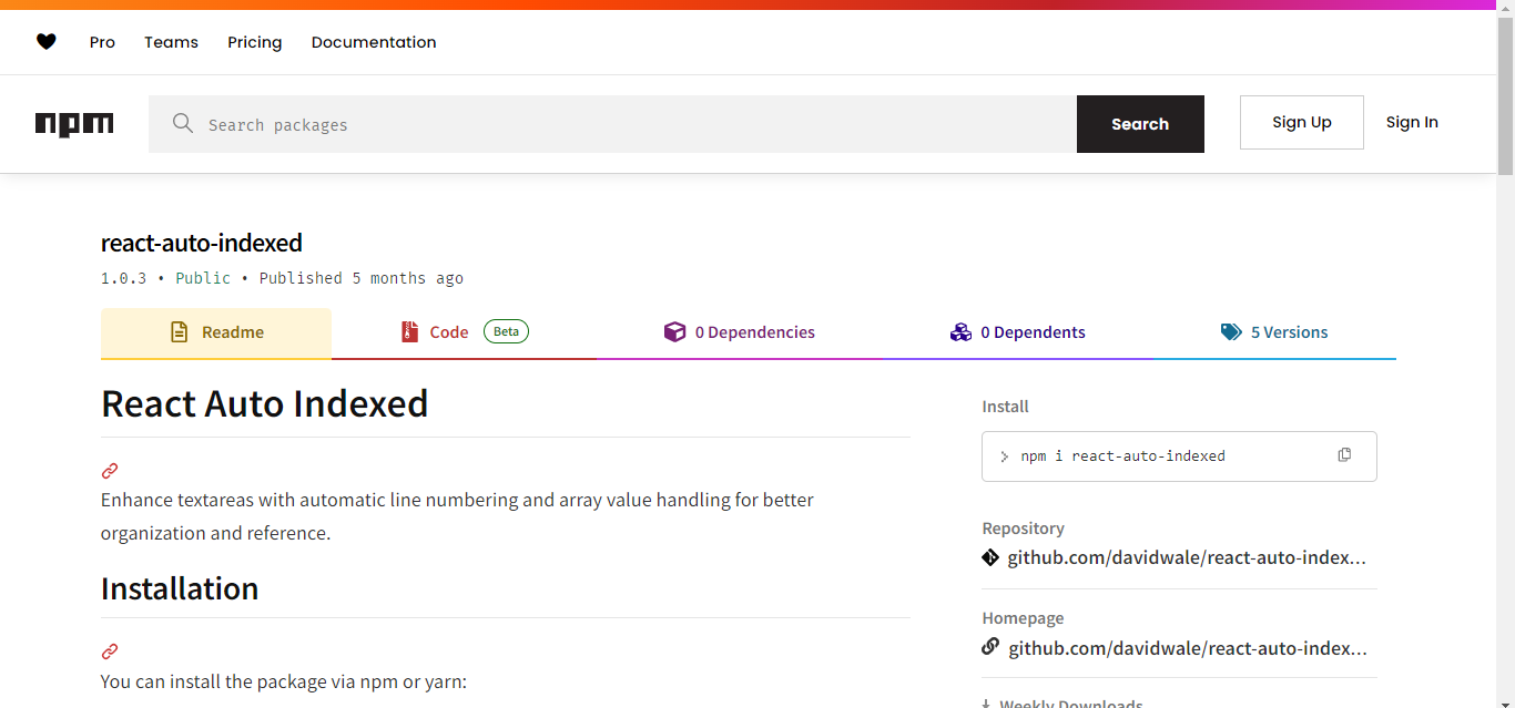 An NPM package that auto index values in a react textarea